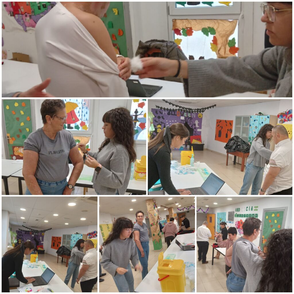 Así, las Enfermeras del Centro de Salud del Torredelcampo han venido a Alhucema a ponernos a trabajadores/as y a las personas residentes la doble vacuna.