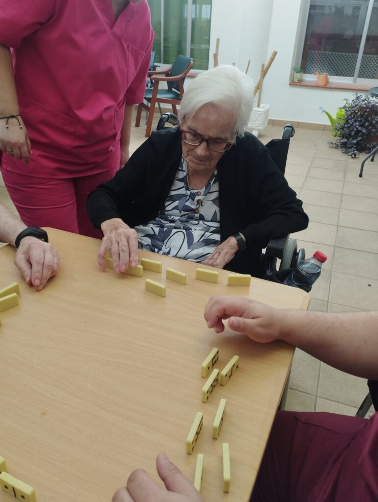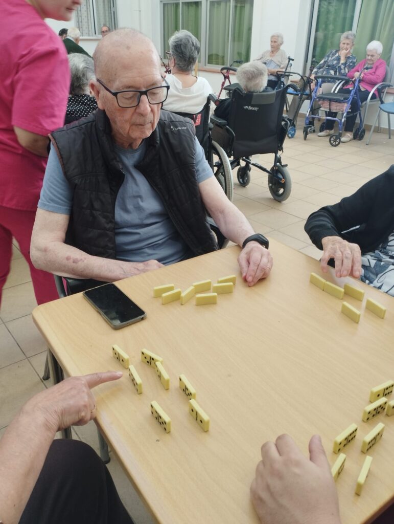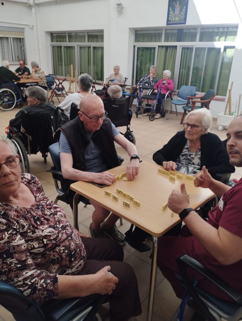 En el día de hoy, hemos recibido la visita de los/las pensionistas del Hogar del Jubilado, que han compartido una mañana lúdica con nuestros/as residentes, donde hemos estado aprendido los trucos para ser los mejores jugando a domino.