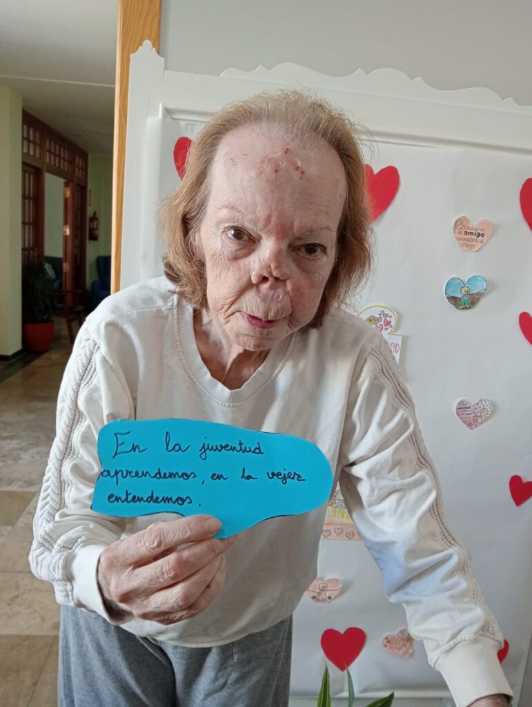 Durante el taller, nuestros/as residentes han participado en un mural colaborativo con frases muy especiales. Ha sido un buen momento para compartir risas, en los que se ha trabajado la memoria y, además, se ha celebrado una vida llena de historias.