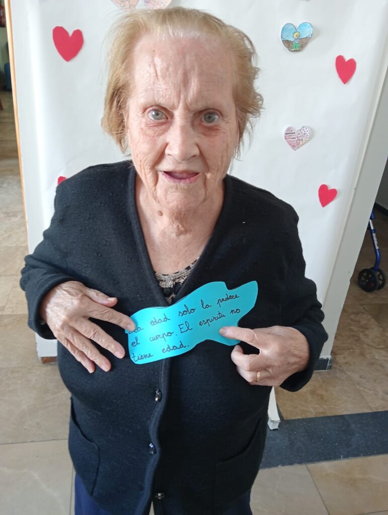 Durante el taller, nuestros/as residentes han participado en un mural colaborativo con frases muy especiales. Ha sido un buen momento para compartir risas, en los que se ha trabajado la memoria y, además, se ha celebrado una vida llena de historias.