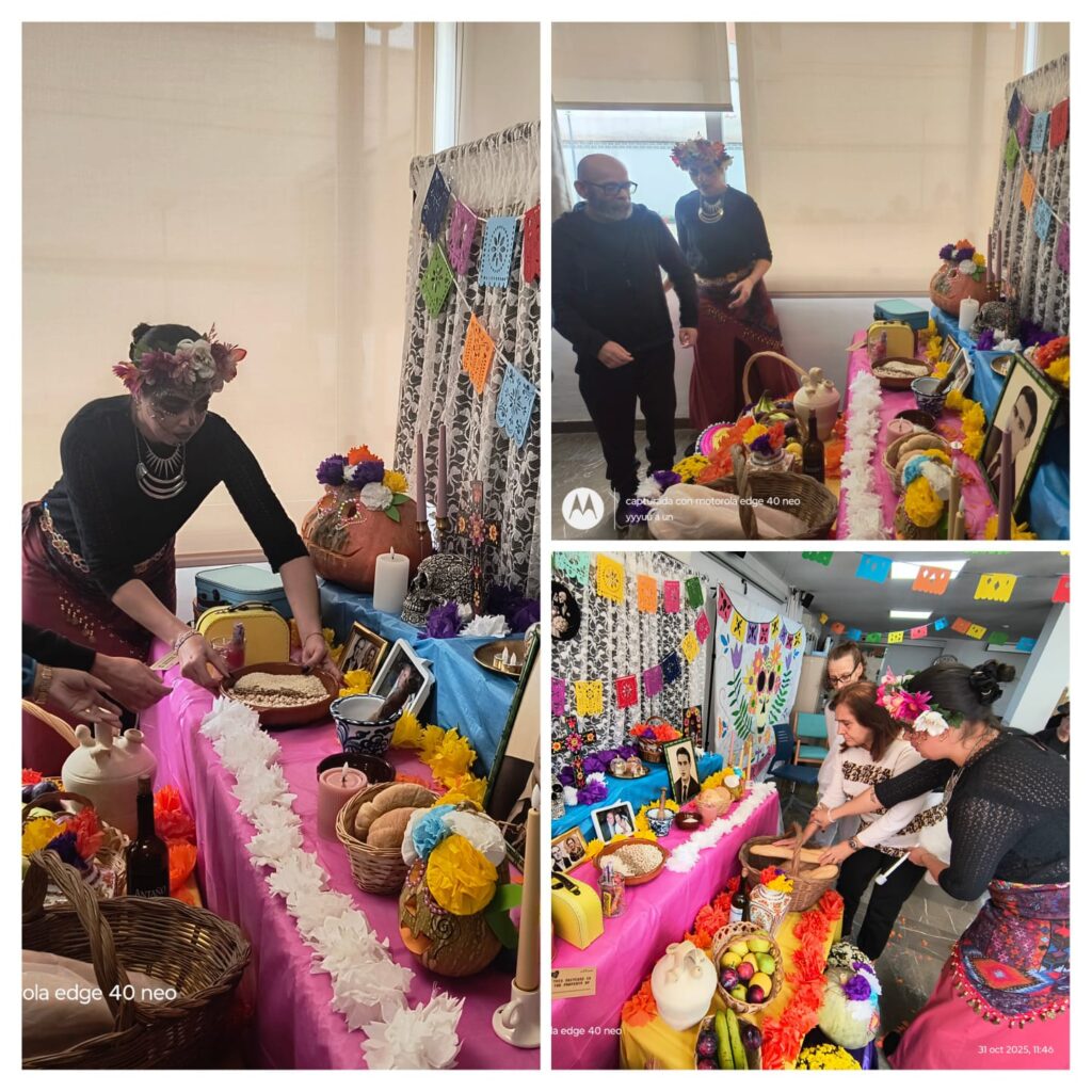 El centro se transformó para la ocasión: flores de cempasúchil, guirnaldas de papel picado y un pequeño altar con fotografías decoraron los espacios comunes, creando un ambiente mágico.
