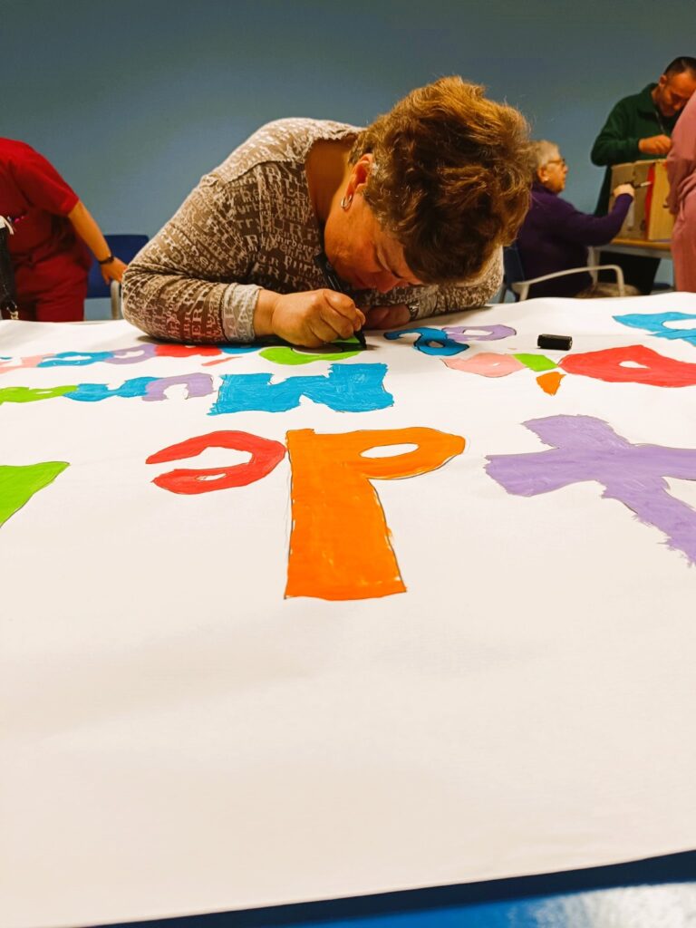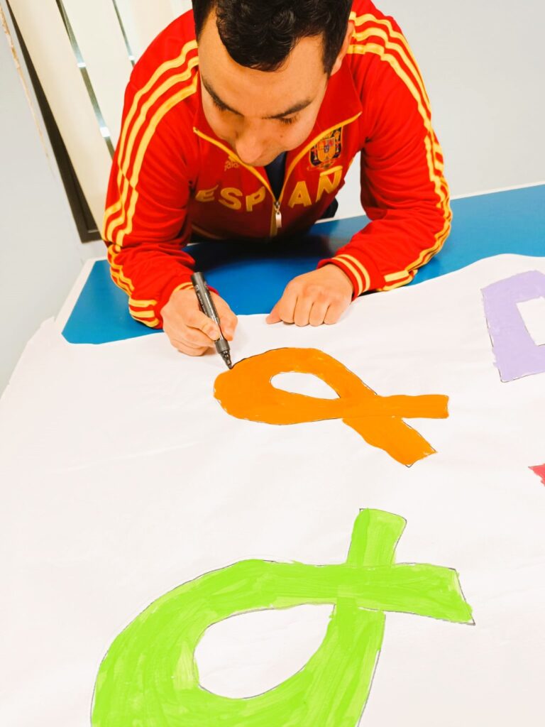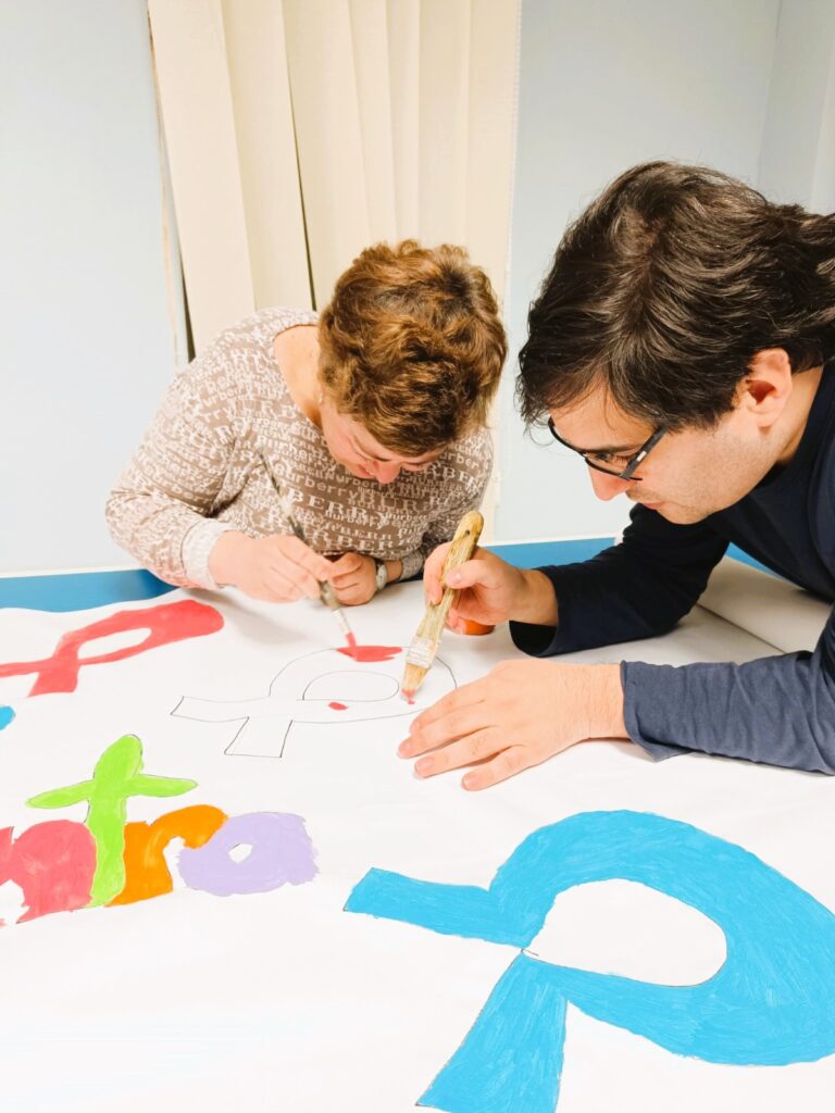 Además, también realizamos un taller de laborterapia en el que nuestros residentes realizaron un mural con lazos de diferentes colores con el fin de además de darles a conocer esta patología, permitirles trabajar destrezas manipulativas como la motricidad fina, integración bilateral, precisión, coordinación óculo-manual, etc, además de favorecer la cohesión del grupo mediante diálogos relacionados con la temática.