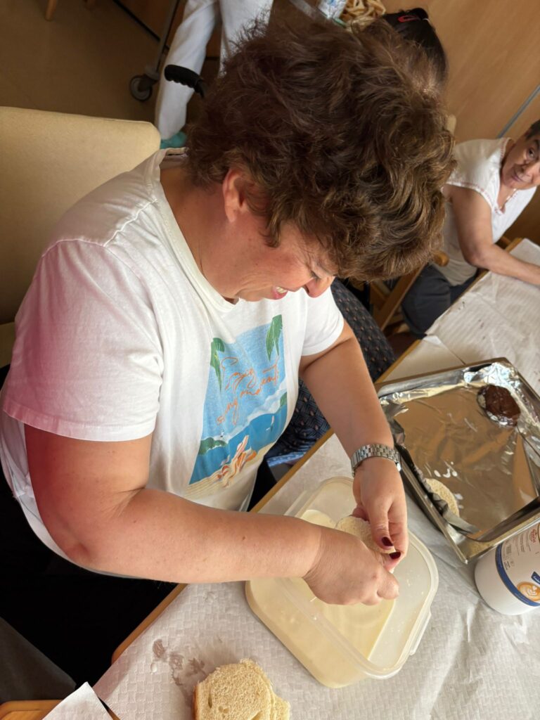 Para culminar la actividad, los/las residentes pudieron degustar sus propias creaciones en una merienda compartida, disfrutando del sabor del esfuerzo y el buen ambiente generado durante el taller.