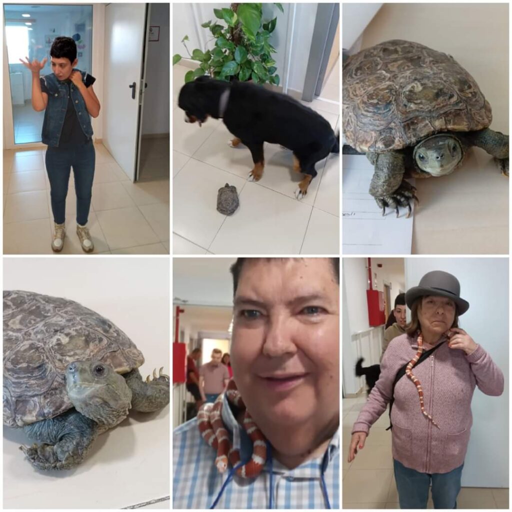 Por eso, en el CDI ALHUCEMA-ENTREPINARES todas las semanas el Psiconeurólogo y psicopedagogo Manuel Flores junto con las adiestradoras Isabel Trigo y Paqui, traen a nuestros/as amigos/as peludos/as, con alas, con caparazón o con escamas…con los/as que trabajamos la psicomotricidad, la estimulación y la reducción de niveles de ansiedad en coordinación con el Equipo Multidisciplinar del Alhucema.