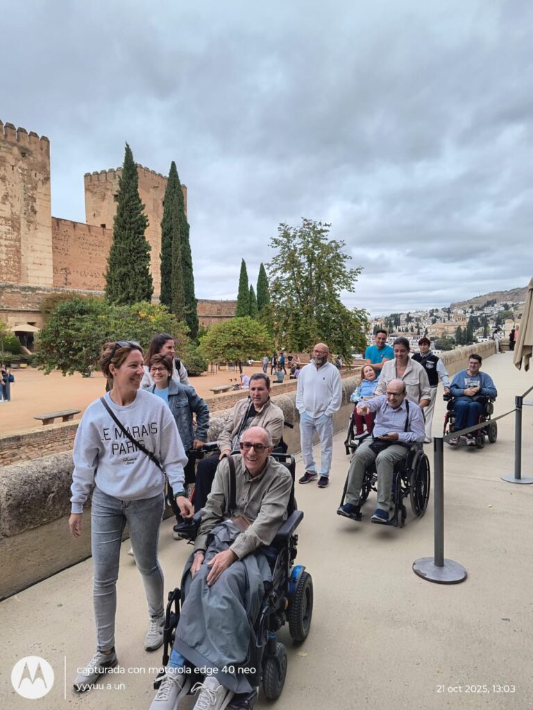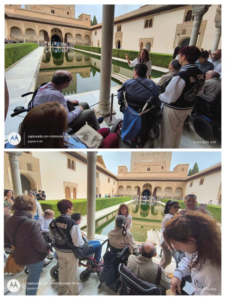 Durante la visita, los/as participantes recorrieron los Palacios Nazaríes, el Patio de los Leones y los hermosos jardines del Generalife, acompañados de explicaciones adaptadas que permitieron comprender mejor la historia y la belleza del conjunto monumental.