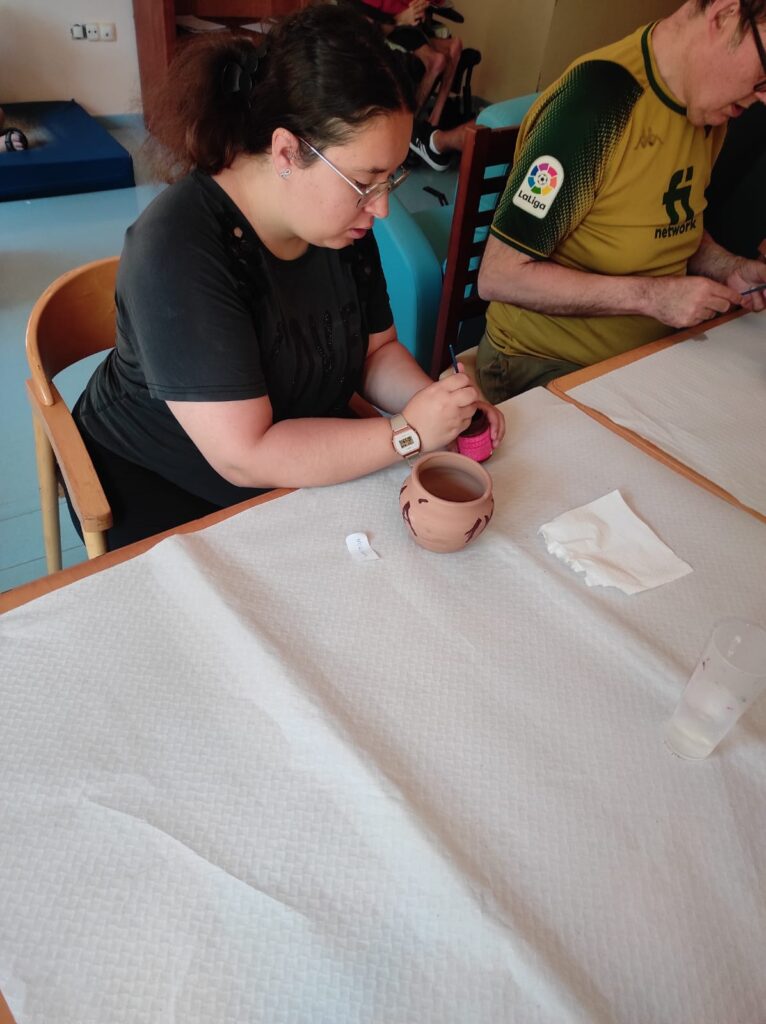 Pintamos nuestras obras de arte que hicimos en el taller de alfarería, dándole rienda suelta a nuestra imaginación, y pensando en esa persona a la que se la vamos a regalar.