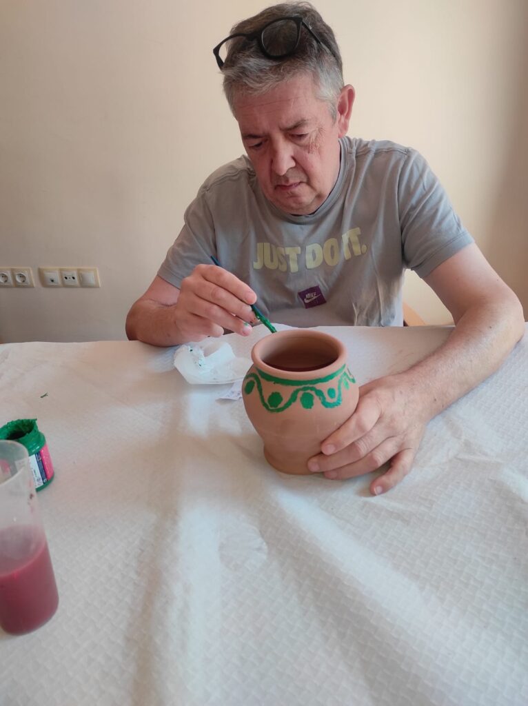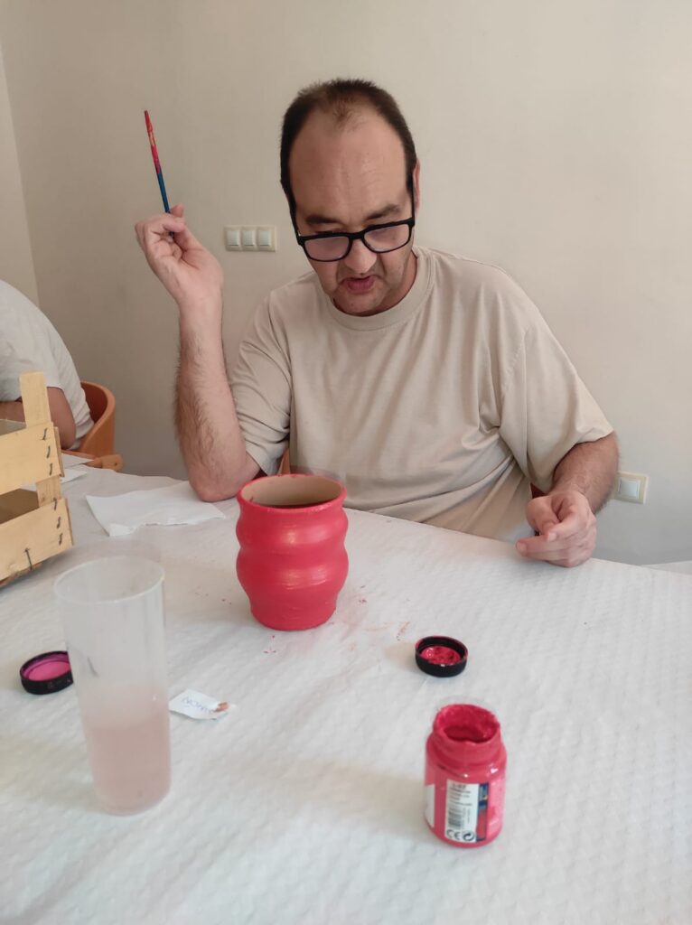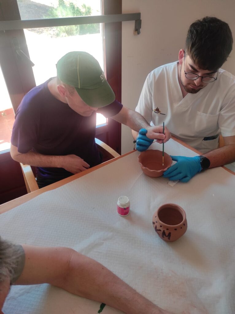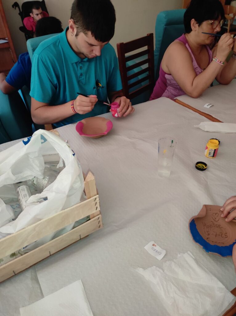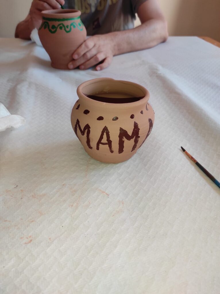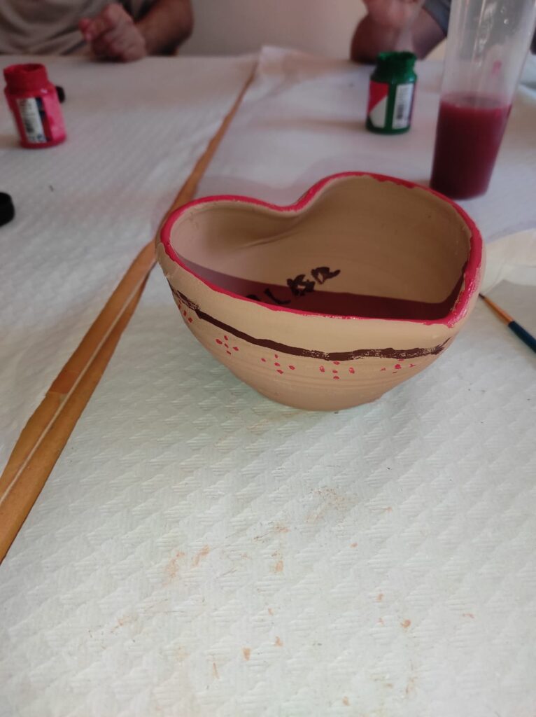 Pintamos nuestras obras de arte que hicimos en el taller de alfarería, dándole rienda suelta a nuestra imaginación, y pensando en esa persona a la que se la vamos a regalar.