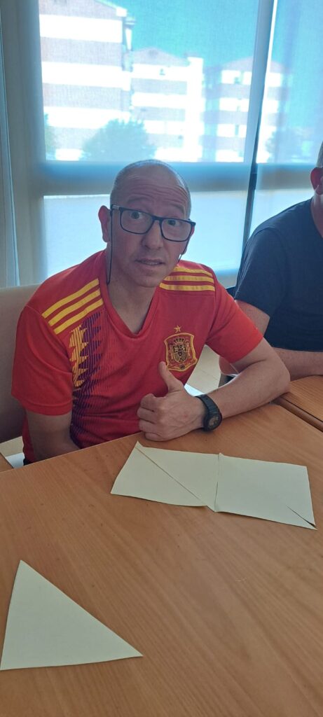Para esta actividad hemos usado las figuras geométricas. Los/as usuarios/as tenían que crear sus propias formas usando cuatro triángulos.