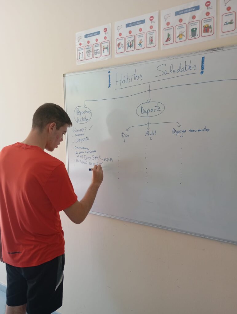 No todo podían ser fiestas, bailes, cine y piscina. También realizamos muchos talleres, uno de ellos de hábitos saludables, donde aprendemos qué comer, la importancia de hacer ejercicio y qué tipo de ejercicios o deporte podemos hacer, y otros muchos conceptos más relacionados con los hábitos para tener una salud 10!