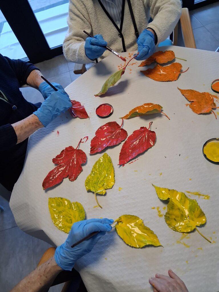 La residencia de mayores María Torres de Entrepinares del Mercadillo celebró esta semana un taller de pintura otoñal, en el que los/as residentes decoraron hojas secas recogidas del jardín con colores cálidos y alegres.