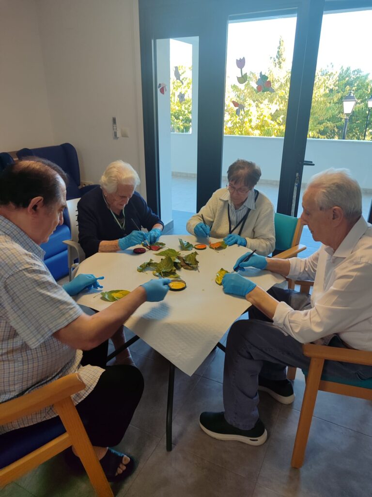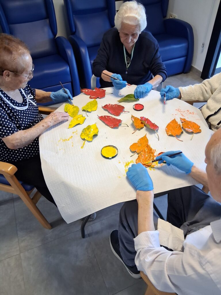 La residencia de mayores María Torres de Entrepinares del Mercadillo celebró esta semana un taller de pintura otoñal, en el que los/as residentes decoraron hojas secas recogidas del jardín con colores cálidos y alegres.