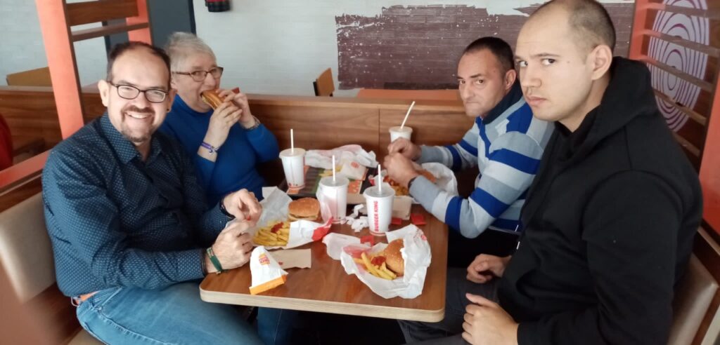 Además, al día siguiente pudimos disfrutar de una buena comilona en el Burger King. Cada uno pudo elegir la hamburguesa que más le gustó, acompañada de unas buenas patatas fritas. ¡Nos pusimos las botas!