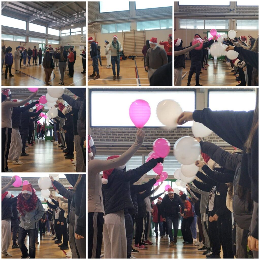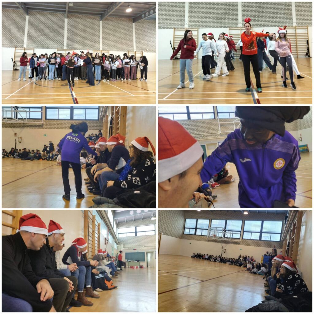 Los/as alumnos y alumnas de 4º ESO nos invitaron a visitarles en su centro de estudios. Nos hicieron un pedazo de recibimiento donde se colocaron haciendo pasillo, teníamos que pasar y nos aplaudían, más tarde nos deleitaron con un teatro navideño chulísimo, que organizaron e hicieron ellos/as mismos/as, con un baile que nos encantó y nos animaban a unirnos a todos/as ellos/as y por último con un villancico precioso y muy currado que cantaron entre todos/as.