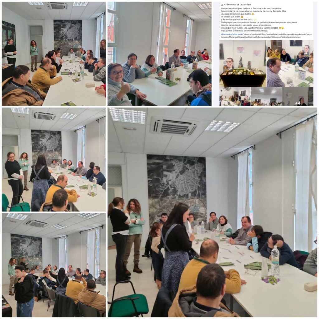 En nuestro Centro ALHUCEMA-ENTREPINARES a lo largo de todo el año realizamos actividades enfocadas a rendir homenaje a la lectura en nuestro Taller “El Rincón de las Palabras de Alhucema“, además compartimos proyecto con la Biblioteca Municipal de Torredelcampo en el Taller de Lectura Fácil, donde todas las semanas bajamos a realizar foros de lectura y puestas en común. Además hemos realizado un encuentro de lectura en el que estuvo acompañándonos la Concejala de Cultura Mª Jesús Rodríguez con el Centro de Inclusión Municipal. El protagonista ha sido Federico García Lorca, con su magnífica “La casa de Bernarda Alba”.