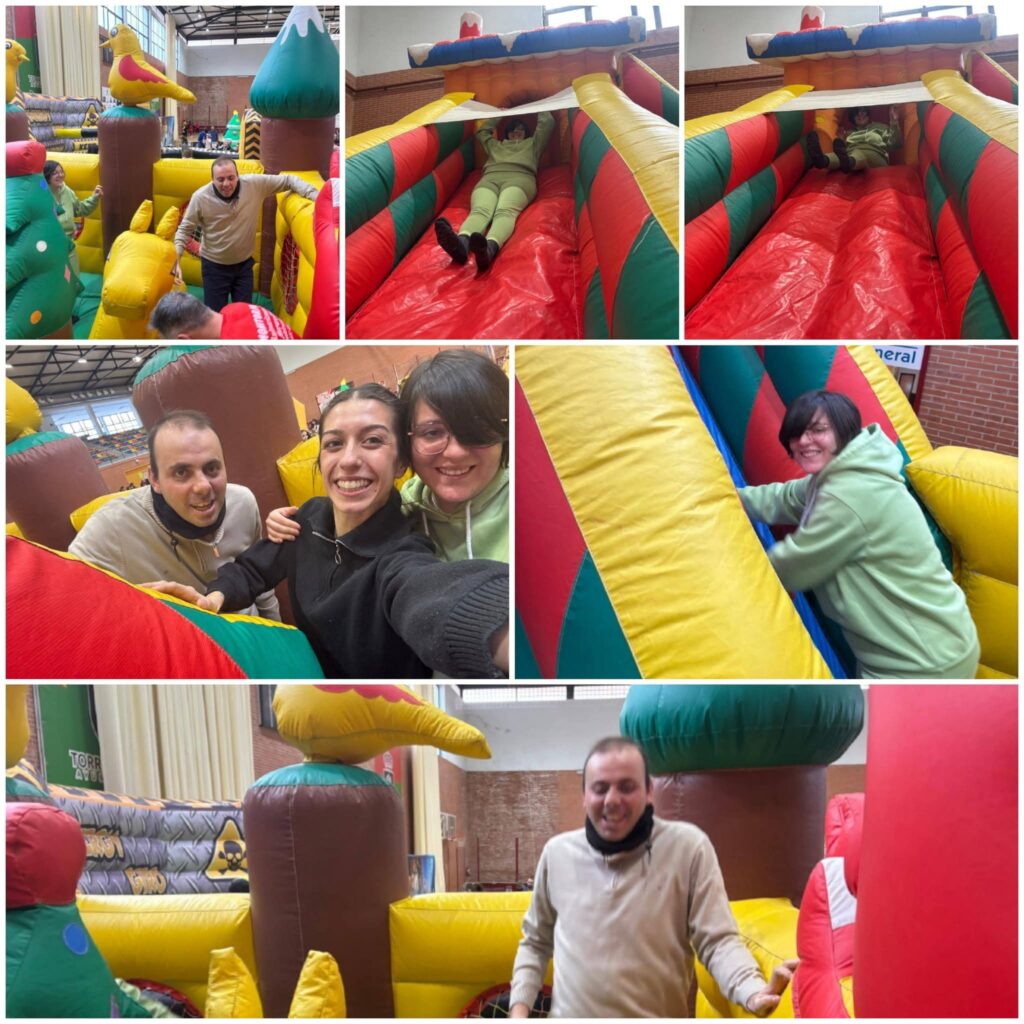 Una de las propuestas a la que nos hemos sumado es Juguelandia, que se organizó en el pabellón municipal. Nos montamos en las colchonetas y en todos los hinchables, nos pusimos las gafas virtuales, nos apuntamos al pintacaras…Participamos en todo y nos divertimos muchísimo.