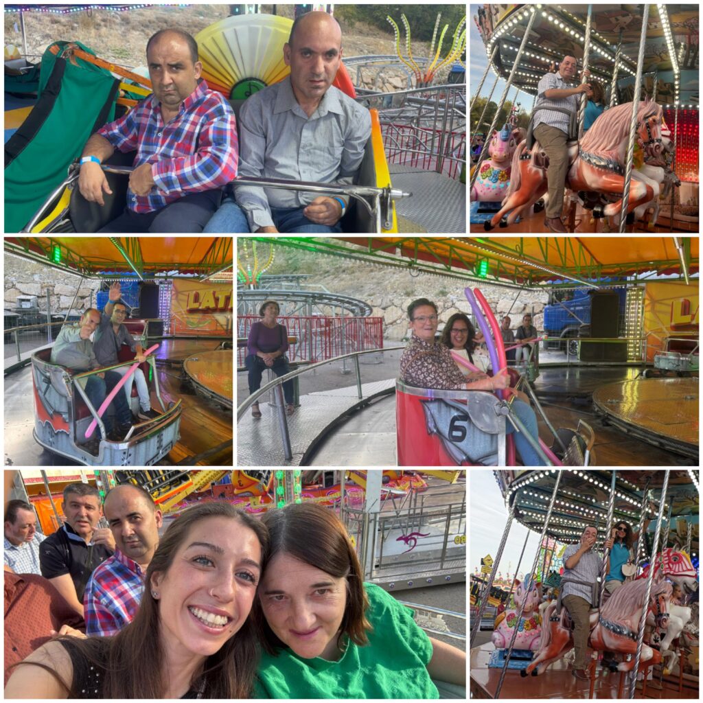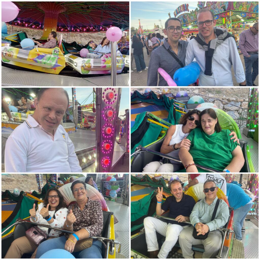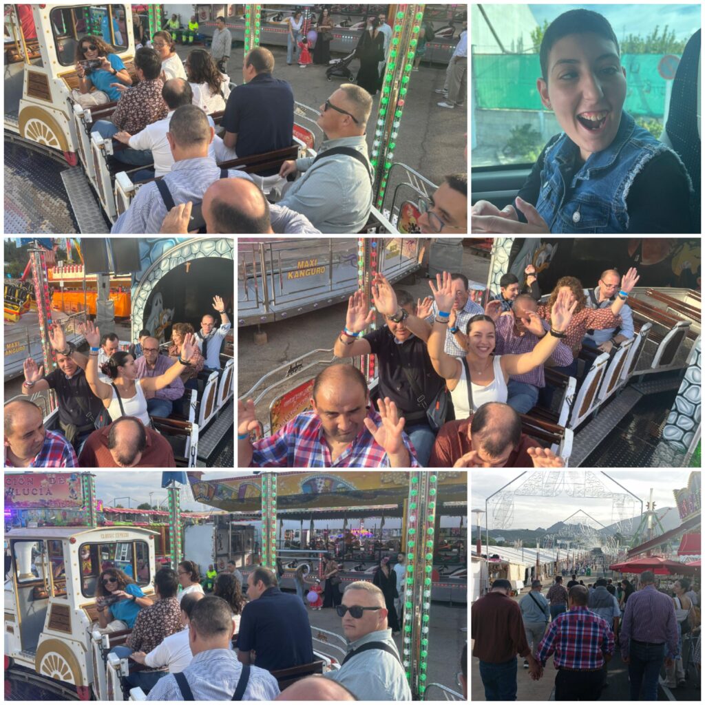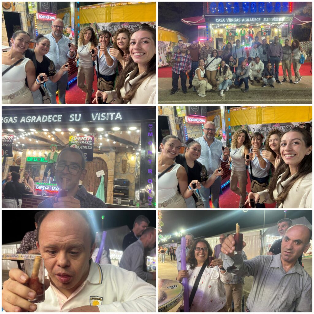 Nos hemos montado a placer en las atracciones y nos partimos de risa en los “Coches Locos”, “El tren de la Bruja”, “El Látigo”, “El gusano loco”, el Sapito, los caballitos… Para cerrar con broche de oro, nos hemos puesto hasta arriba de hamburguesas, perritos y refrescos, en la caseta de Santa Ana. Después, unos vinitos típicos sin alcohol, en Casa Vargas.