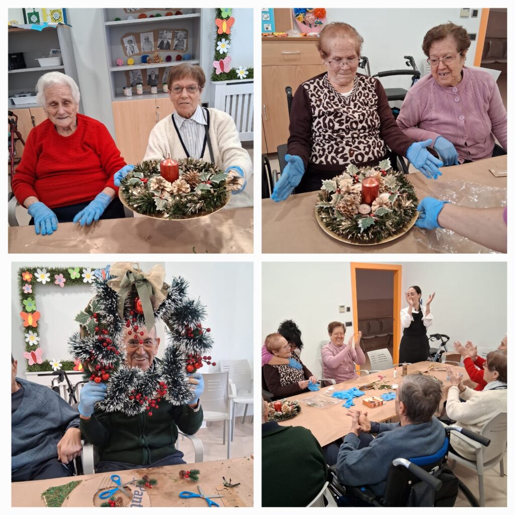 Los/as usuarios de la Residencia de Mayores María Torres del grupo Entrepinares del Mercadillo han participado hoy en un taller de elaboración de centros de mesa navideños, utilizando materiales naturales y decorativos para crear sus propios diseños.