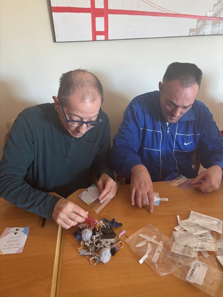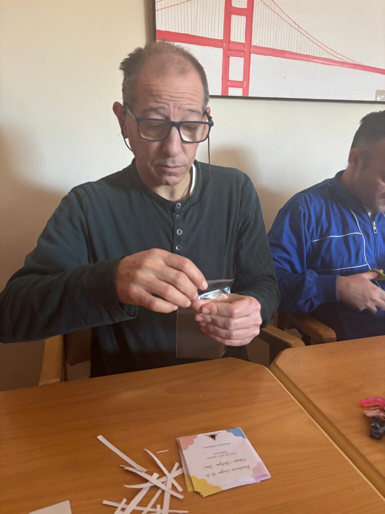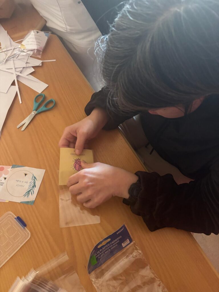 Una vez terminados, los/as residentes se encargaron también del empaquetado de los llaveros, cuidando los detalles y preparando el encargo para su entrega.
