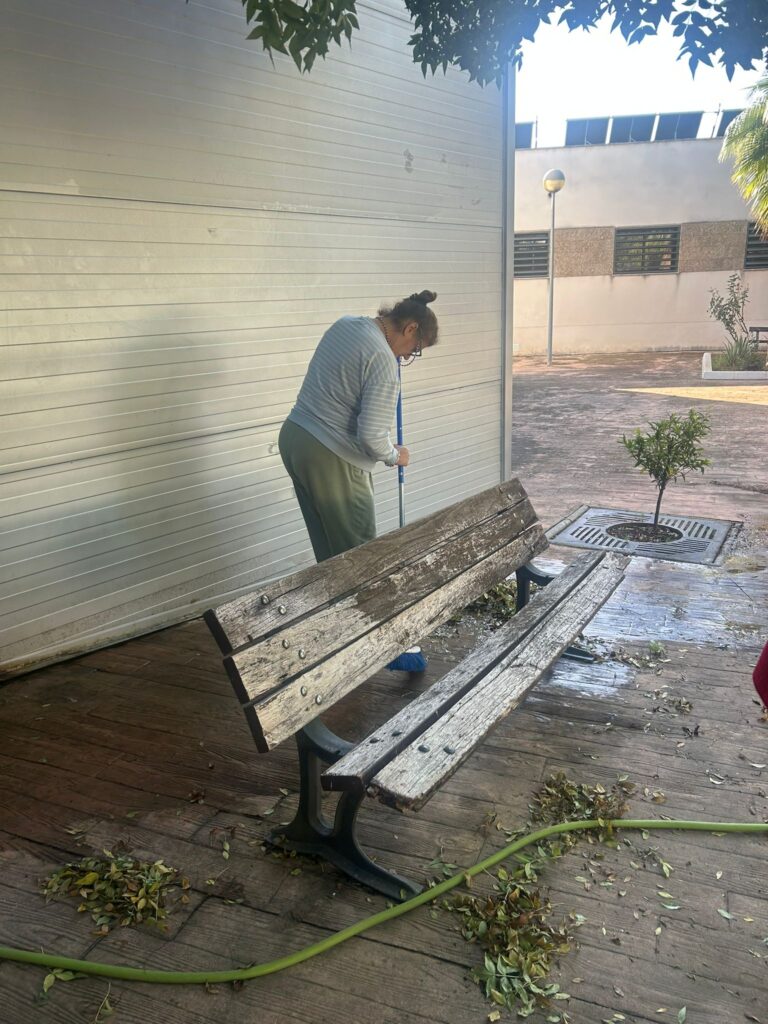 El otoño ha llegado al centro Virgen de la Cabeza de Entrepinares del Mercadillo y, con él, una lluvia de hojas que nuestros/as residentes no han dudado en poner bajo control.