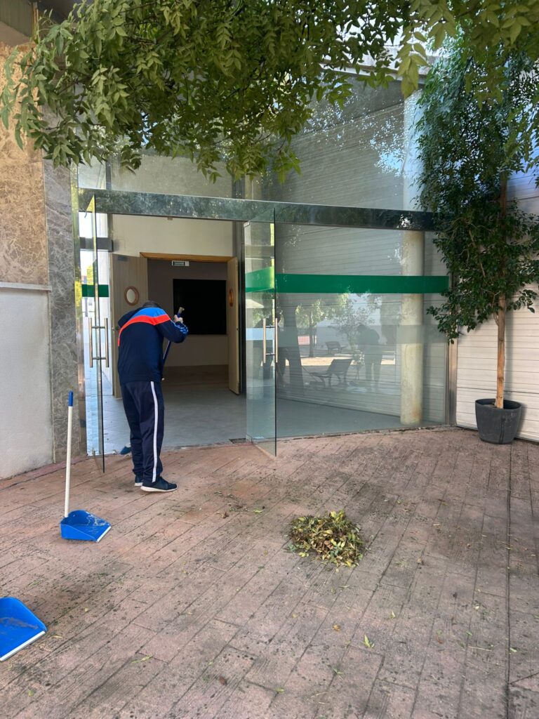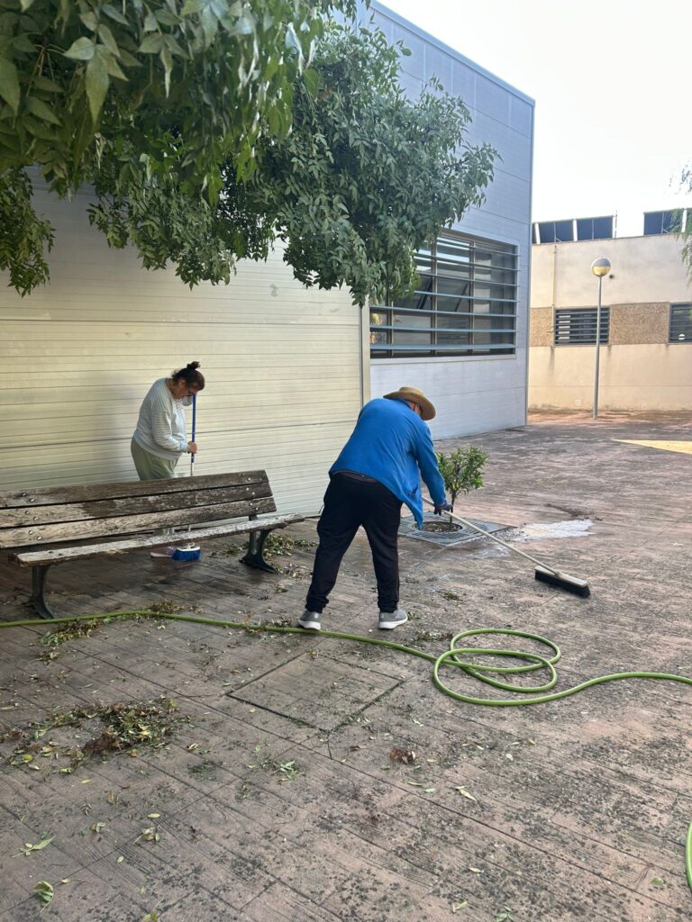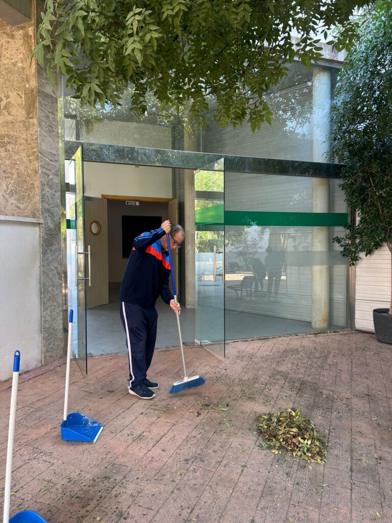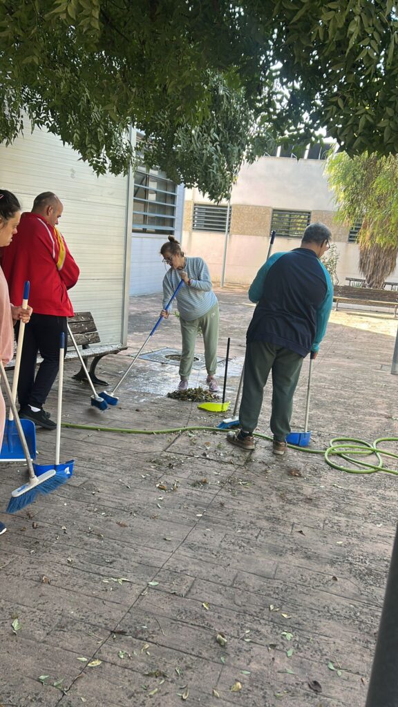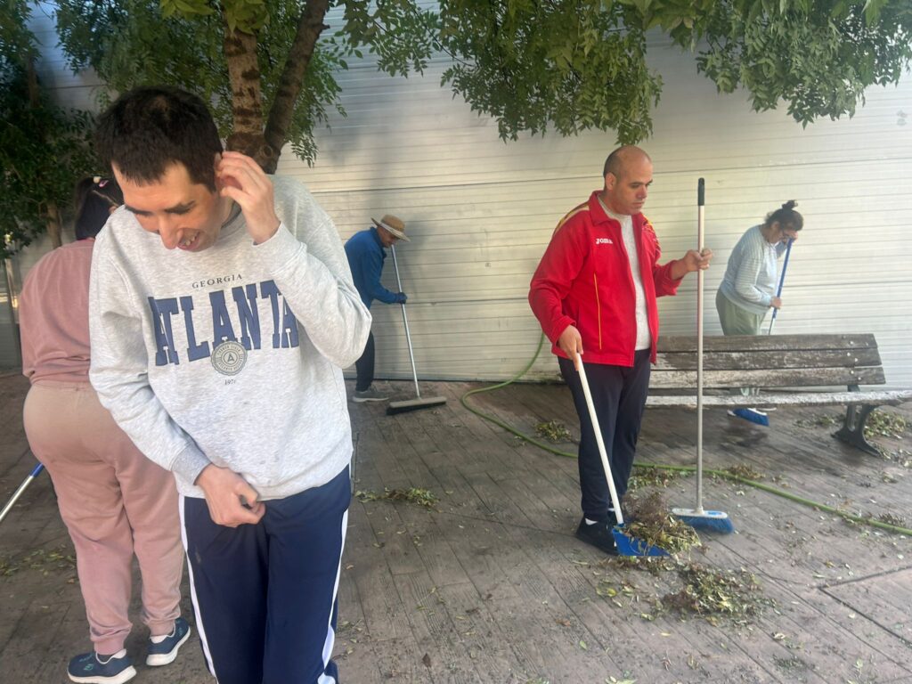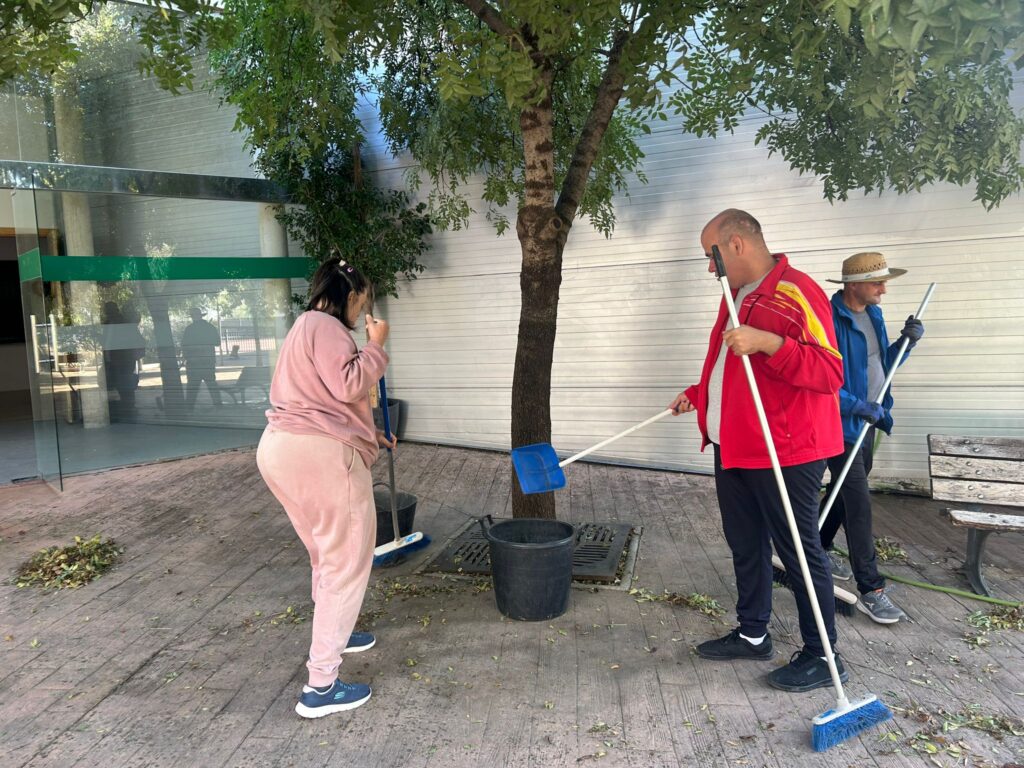 El otoño ha llegado al centro Virgen de la Cabeza de Entrepinares del Mercadillo y, con él, una lluvia de hojas que nuestros/as residentes no han dudado en poner bajo control.
