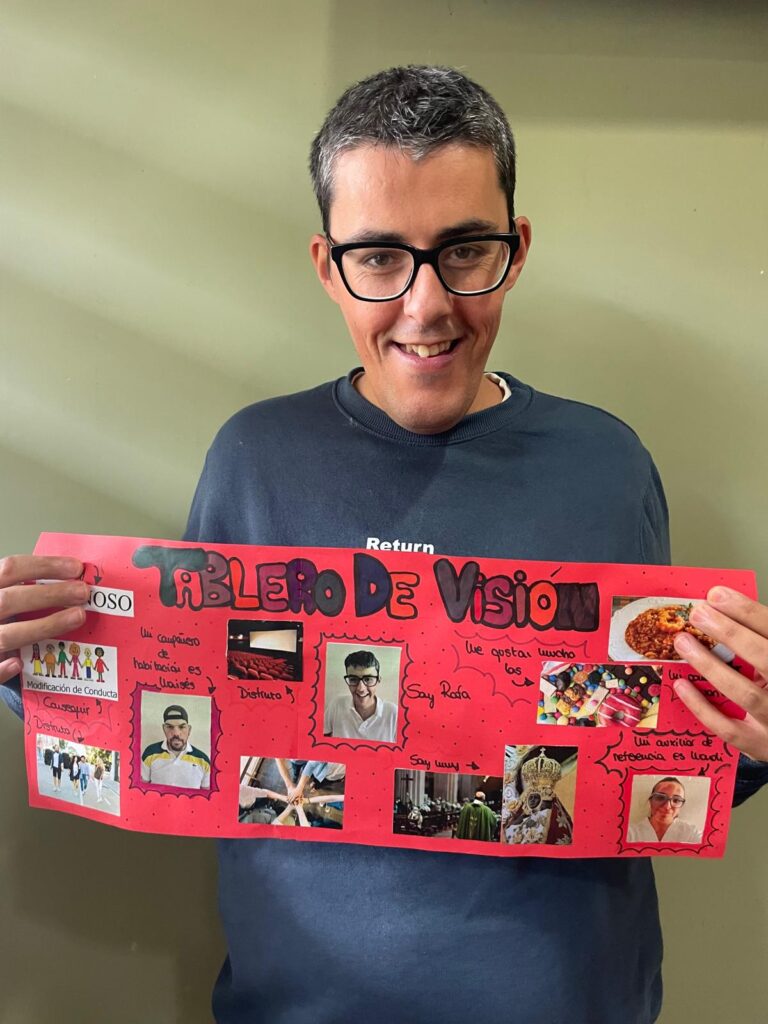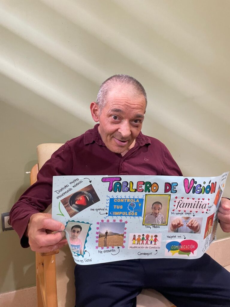 El propósito de este taller ha sido la creación de una representación visual de las metas y deseos de nuestros/as residentes con la intención de clarificar sus intenciones y mantenerlas presentes en el día a día.