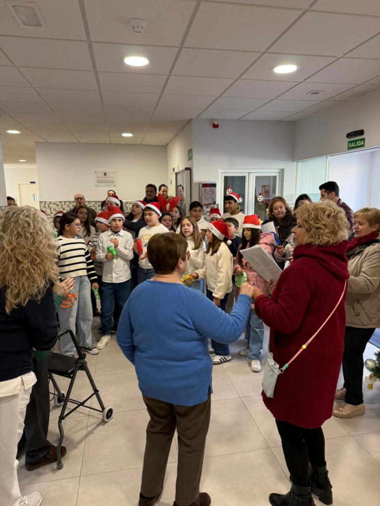Recibimos la visita de los alumnos y alumnas del CEIP Real Mentesa, que llenaron el centro de alegría cantando villancicos junto al coro de la iglesia, acompañados por el alcalde, Juan Morillo, y varios concejales del Ayuntamiento de La Guardia de Jaén.